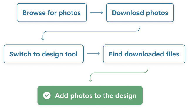 Downloading stock photo files only to re-upload them into a design tool is unnecessary and redundant