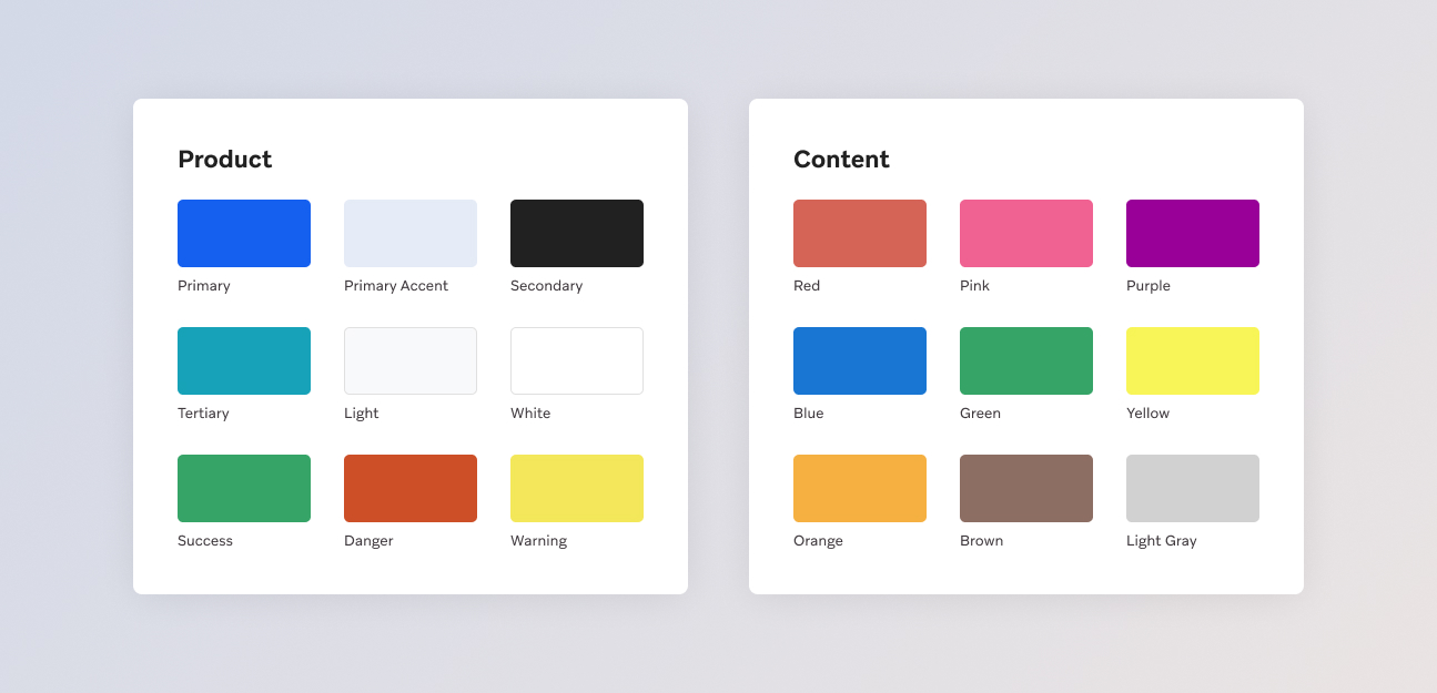 The Macro color palette consists of Product colors that are used in the interface elements and Content colors that are used for tagging and filtering stock content.