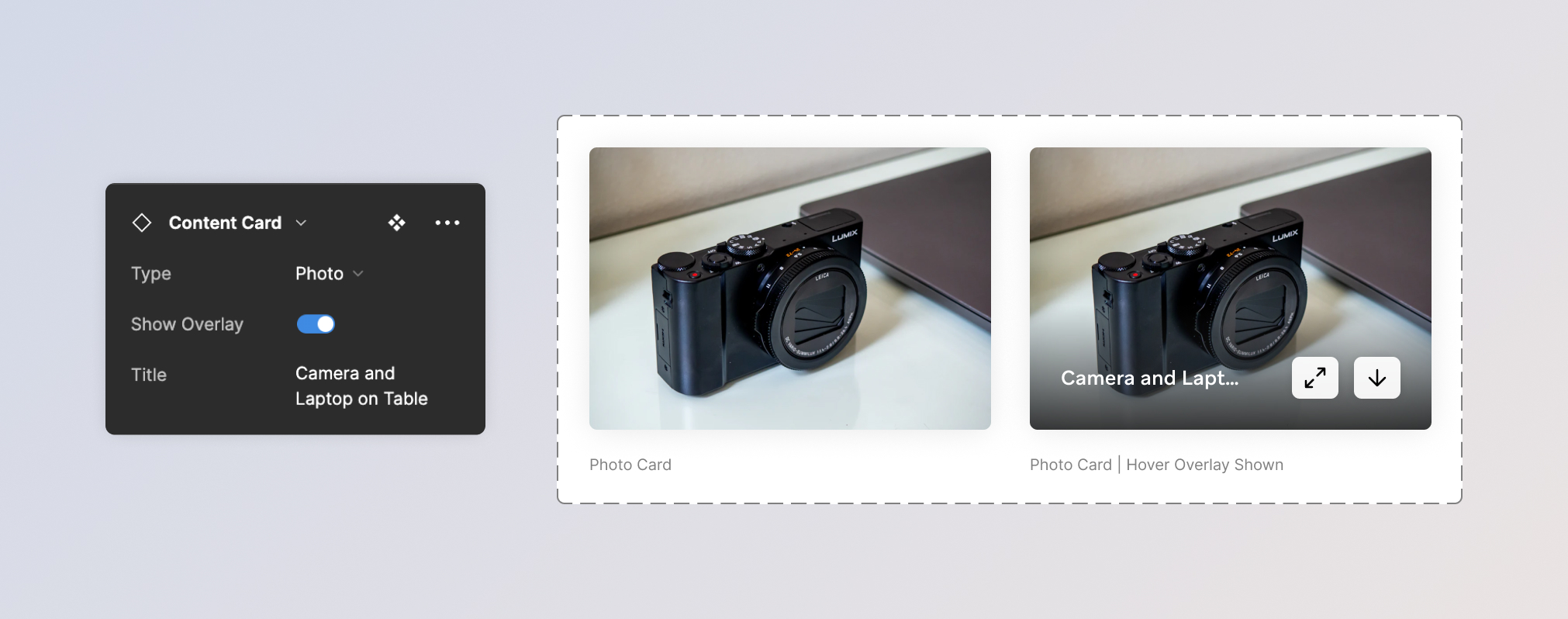 Cards are used to display FOCA assets such as photos, videos, templates, collections, and categories.